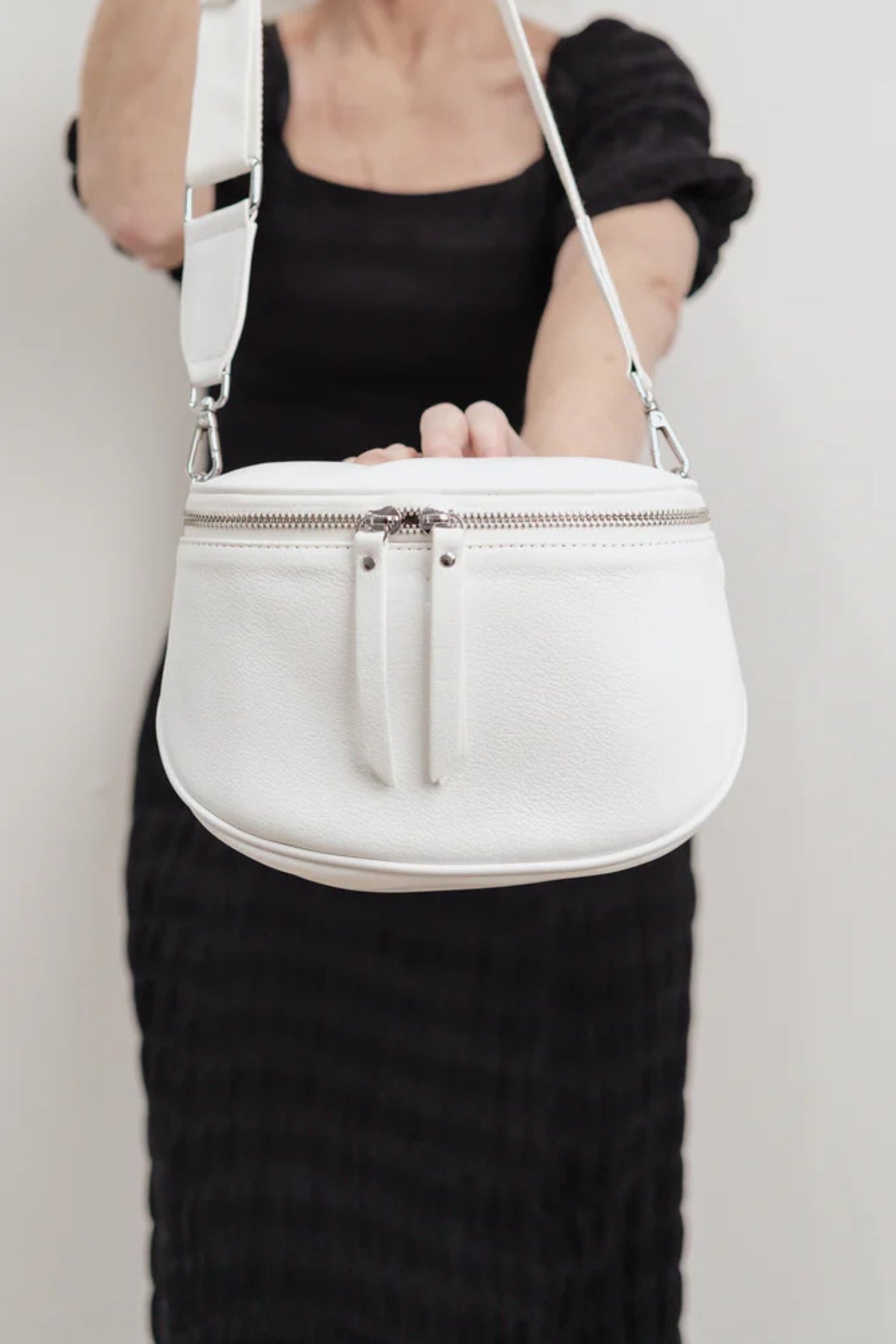 - Adjustable woven cross-body strap for versatile styling.