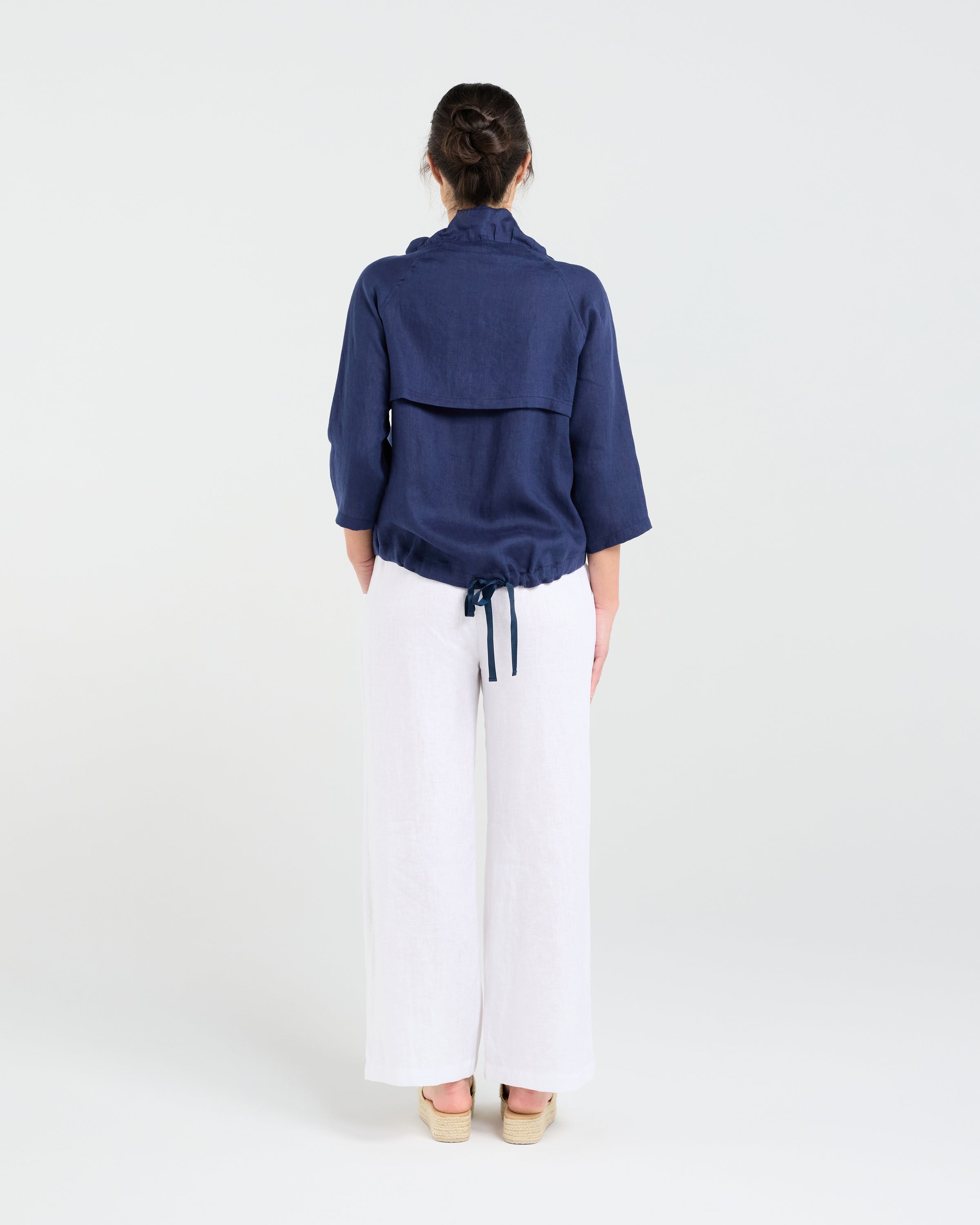 - Drawstring neck and hemline