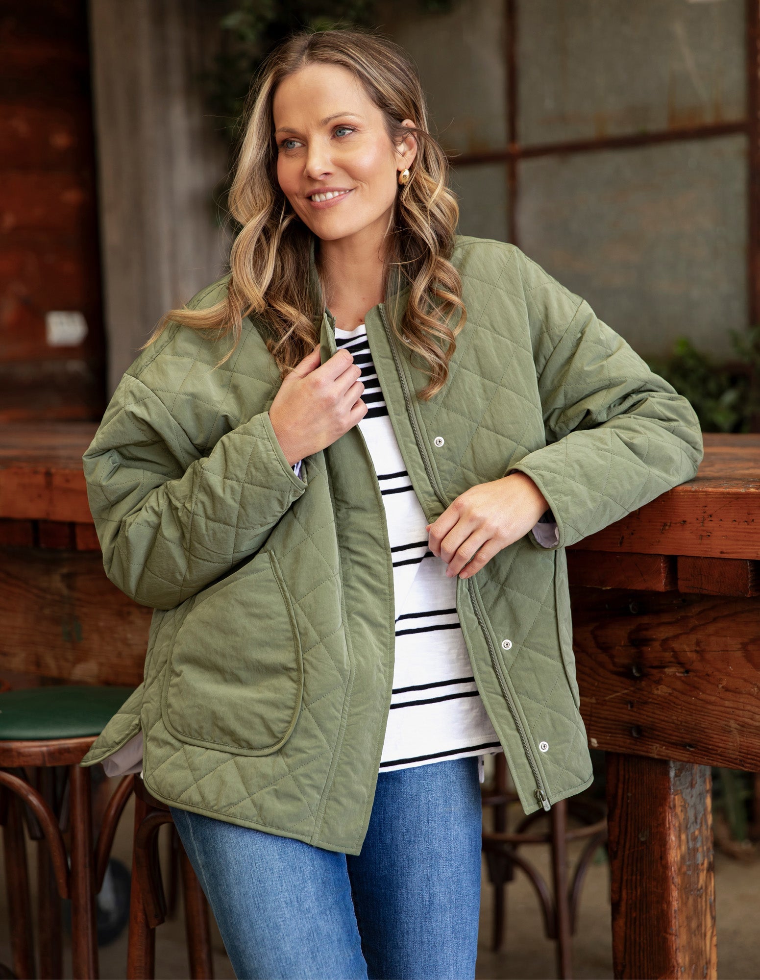 Meet your new everyday layer. The Elm Miley Quilted Jacket is cosy without being bulky, with a relaxed fit that makes it perfect for throwing over knits or tees. Quilted texture adds a touch of structure, while the curved hem keeps things feminine. Pop it on for morning walks, weekend errands, or easy layering between meetings and lunch dates.