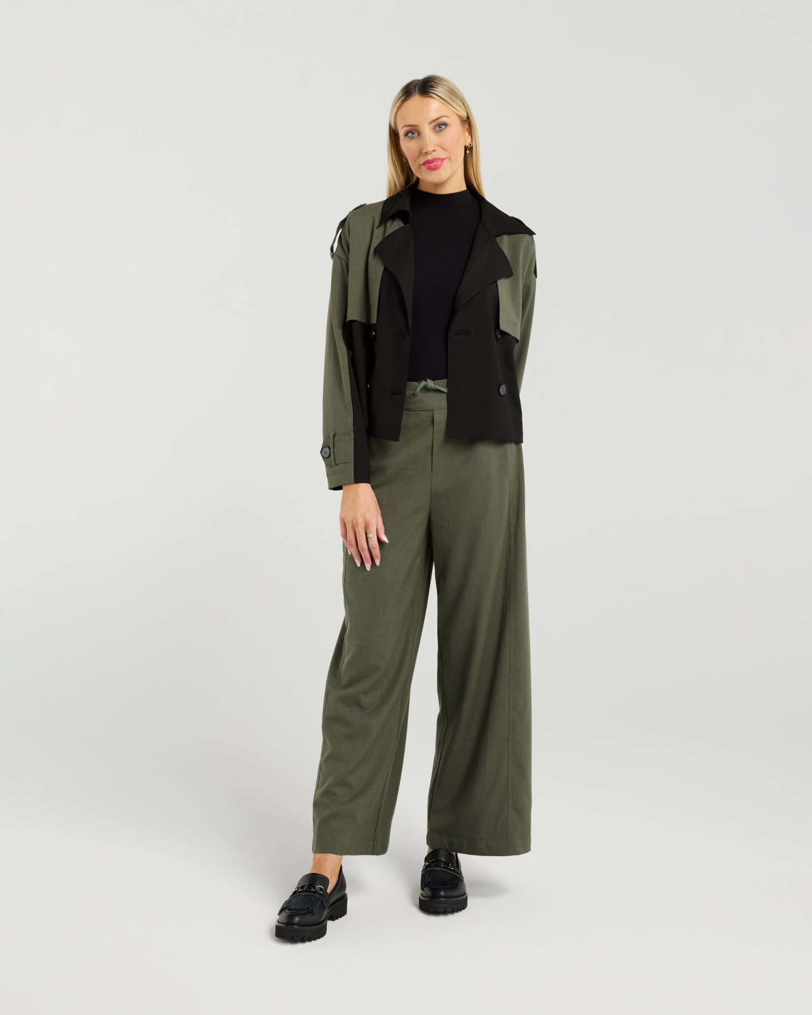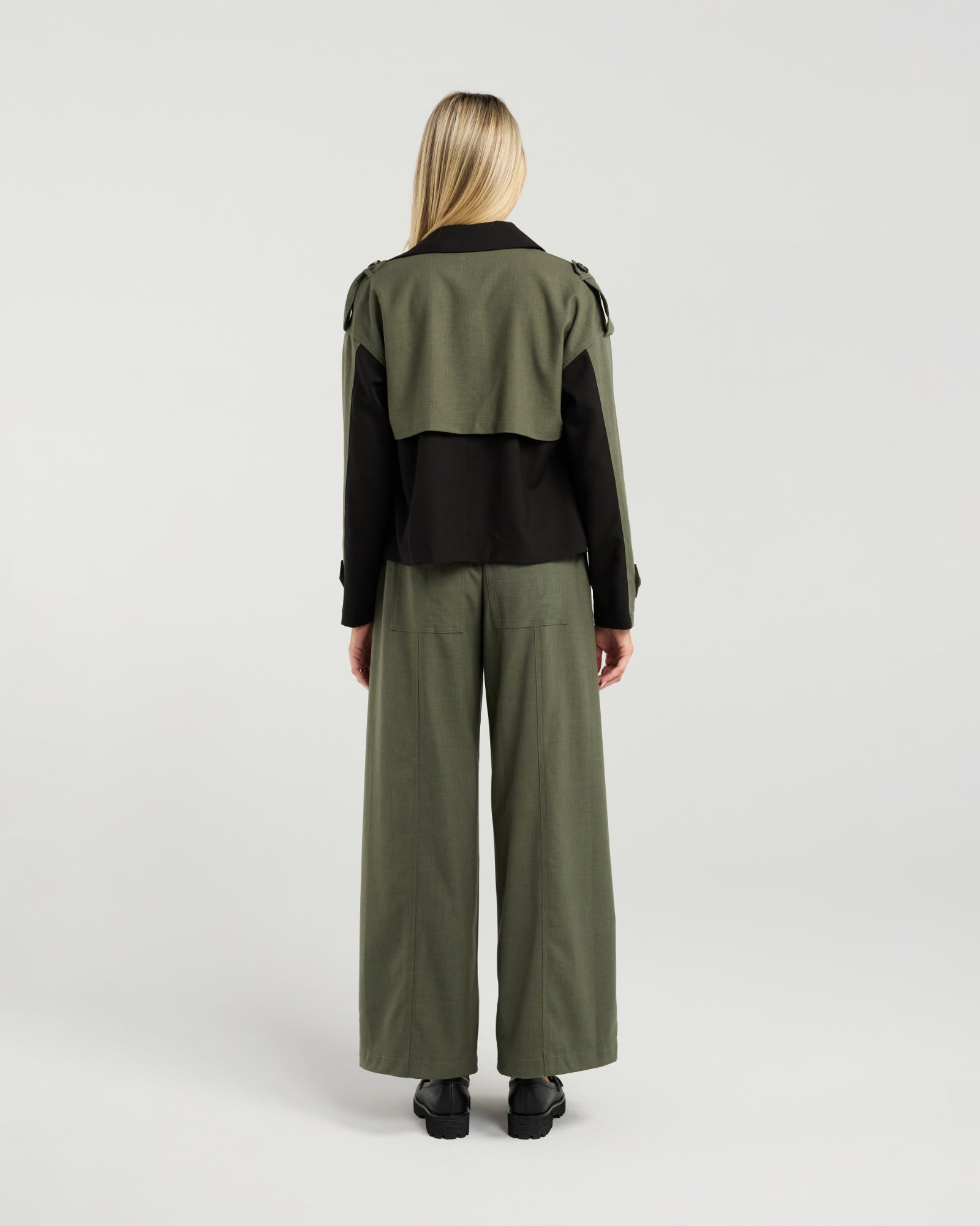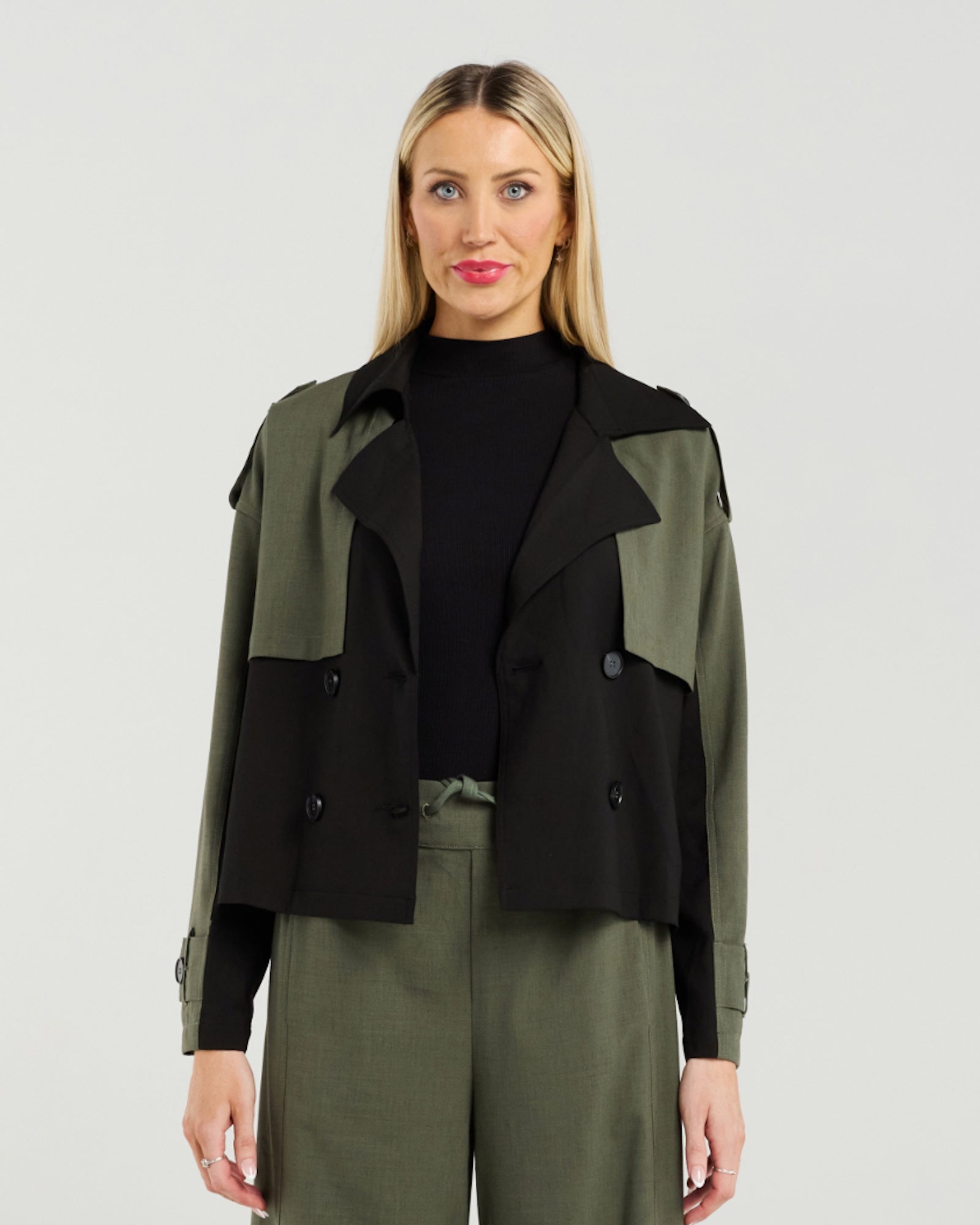 Effortlessly modern and sharply tailored, the Maxwell Trench is a fresh take on a timeless classic. This cropped silhouette adds a chic, contemporary edge while still keeping the refined structure of traditional trench styling. The contrast shoulder and arm detailing highlight the design lines beautifully, drawing attention to the statement lapels and polished buttons.