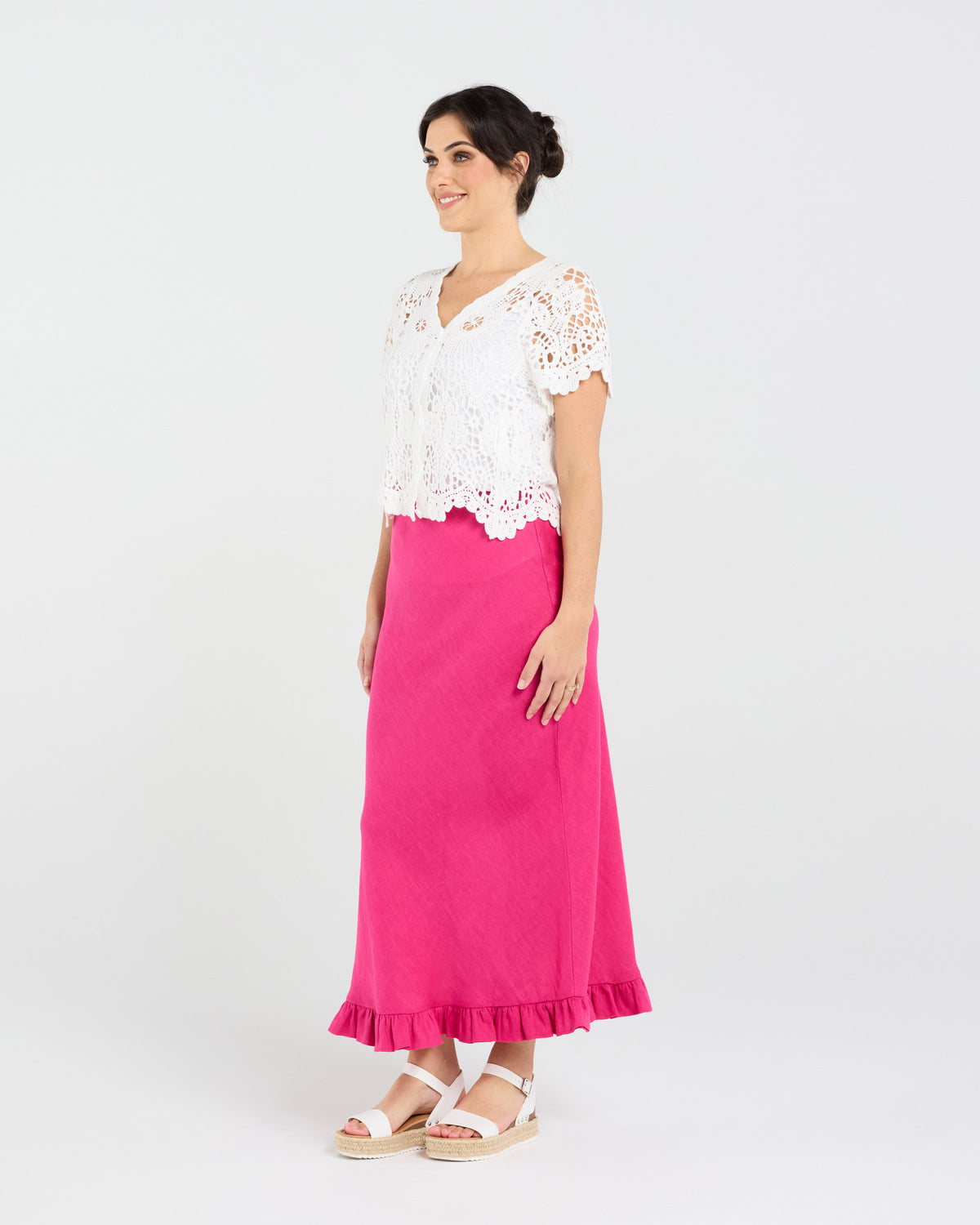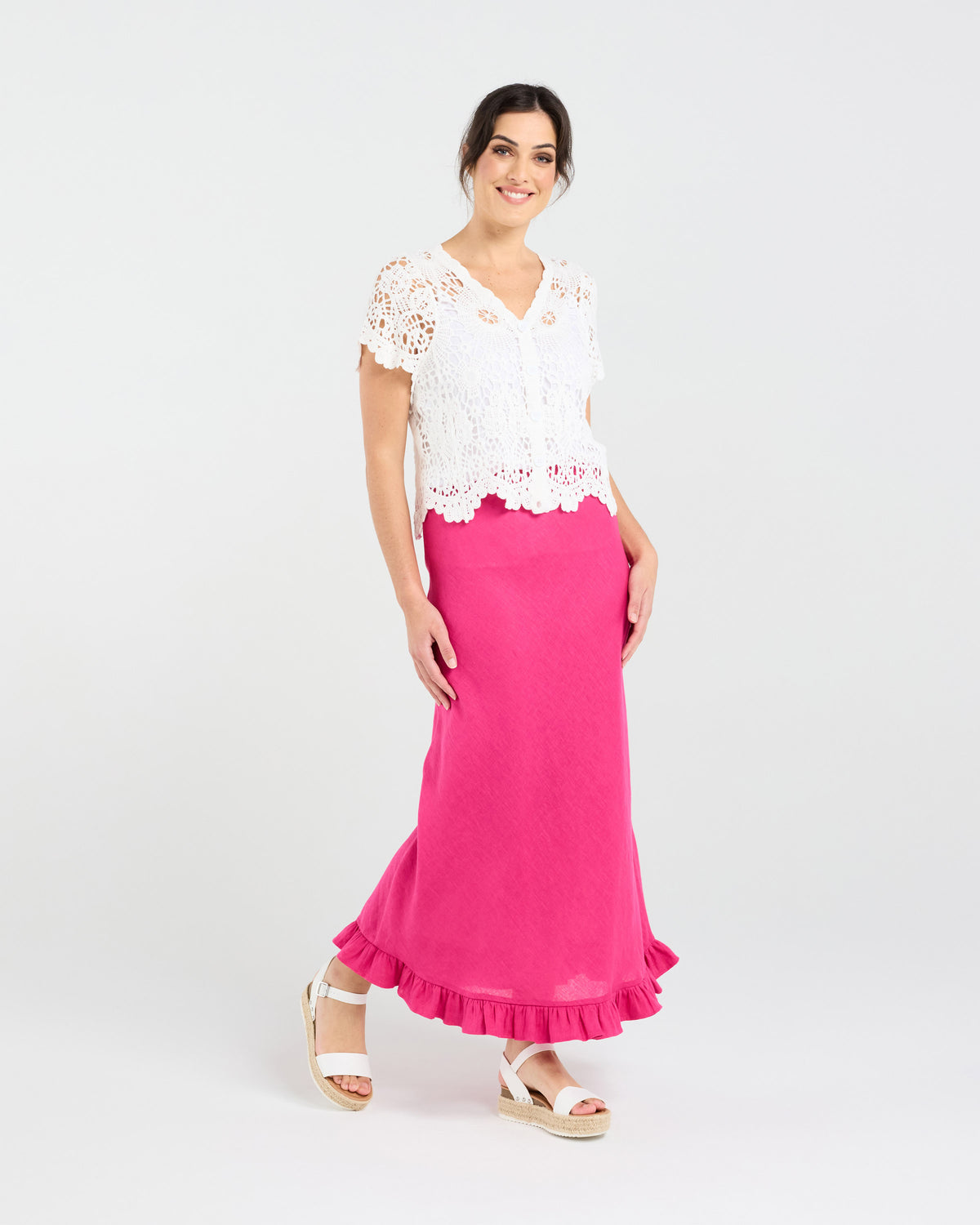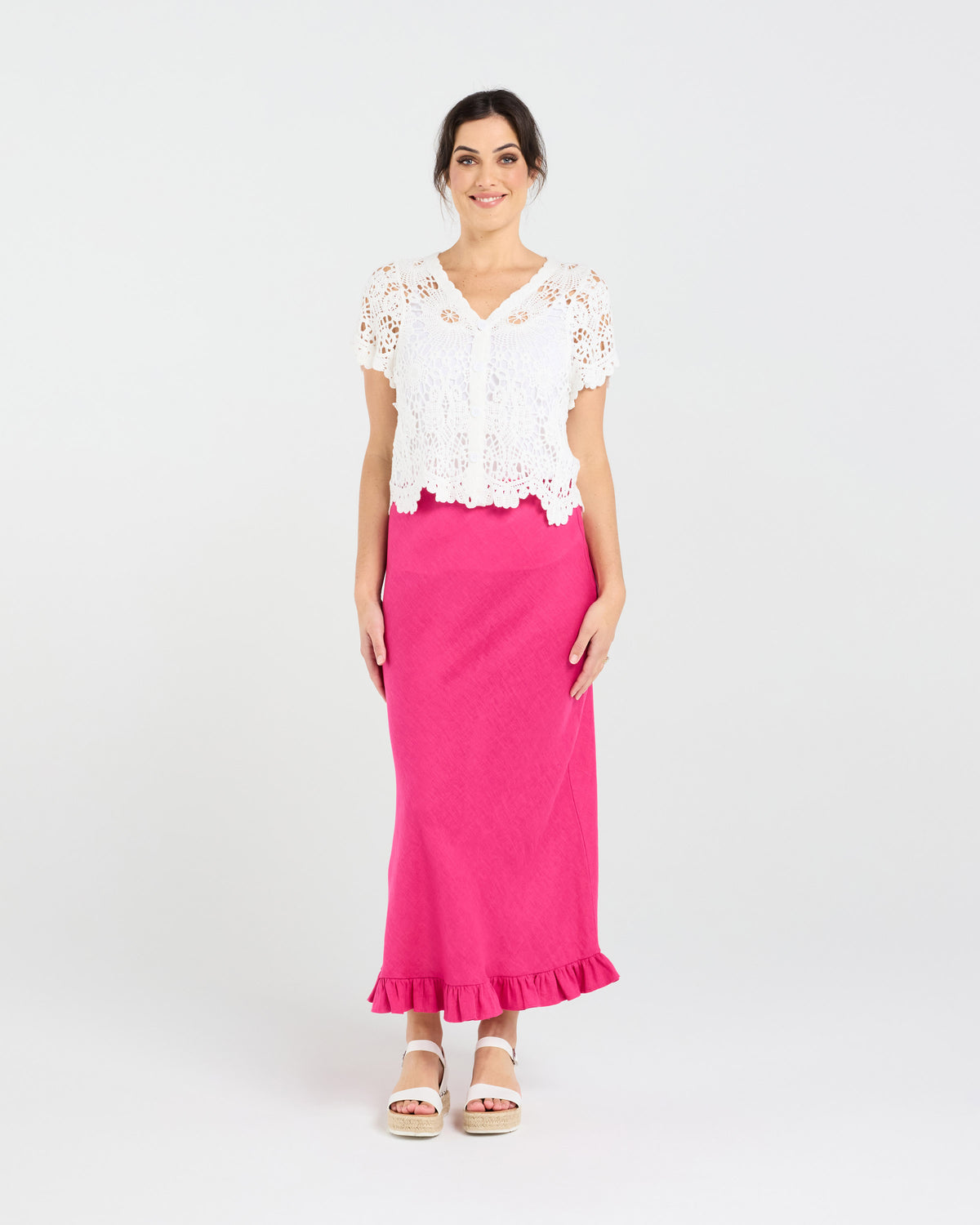 The Amber Crochet Style Cardigan in White from Blackstone is a timeless piece that effortlessly combines classic charm with modern sophistication. Crafted from 100% premium cotton, this cardigan features a unique crochet design that adds a touch of artisanal craftsmanship to your wardrobe. Perfect for layering over your favourite outfits, the Amber Cardigan provides both comfort and style, making it an essential addition for those who appreciate the finer details in life. Whether you're heading to a casual brunch or a relaxed evening out, this cardigan ensures you stay cozy while looking impeccably stylish.
