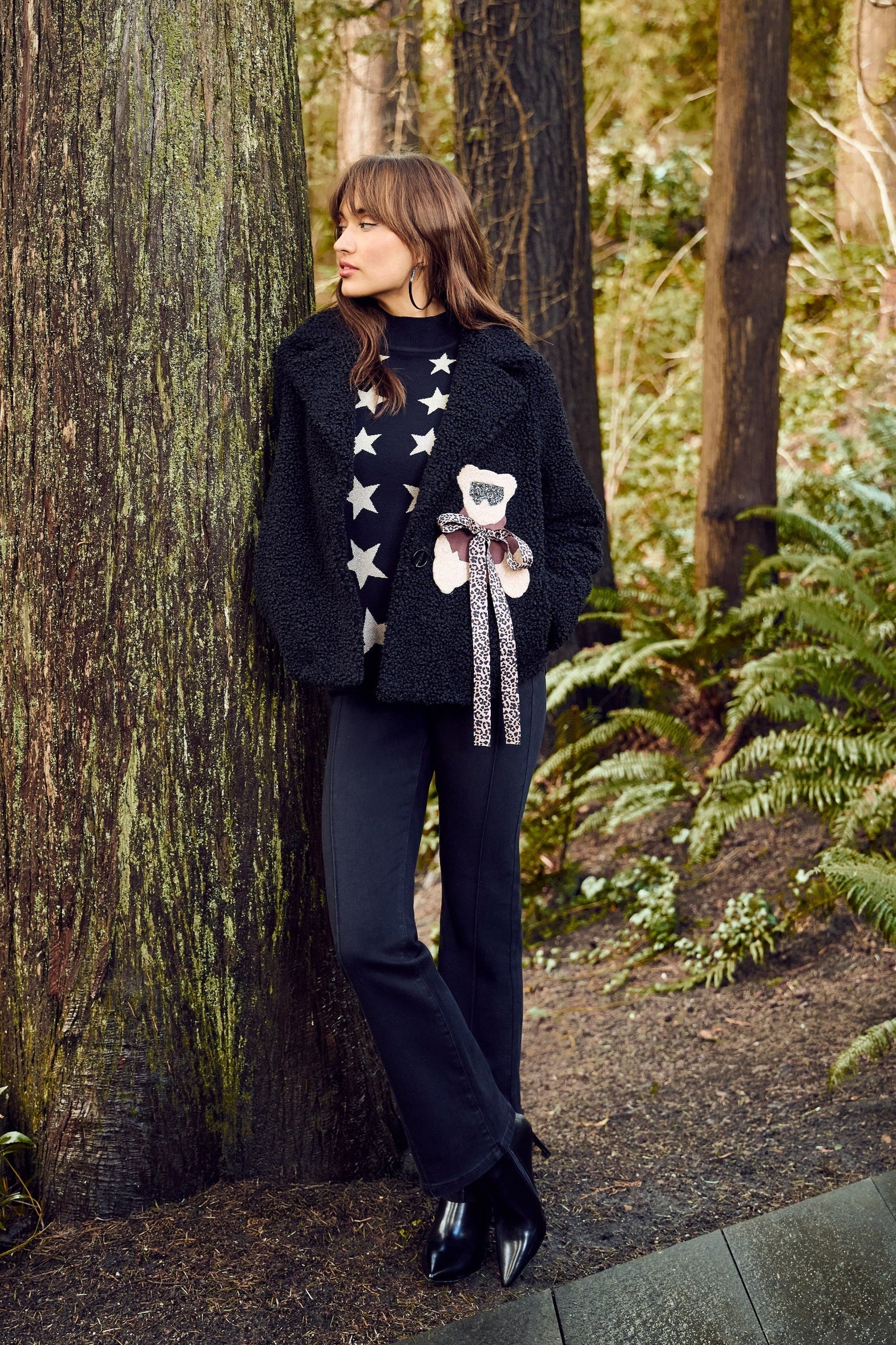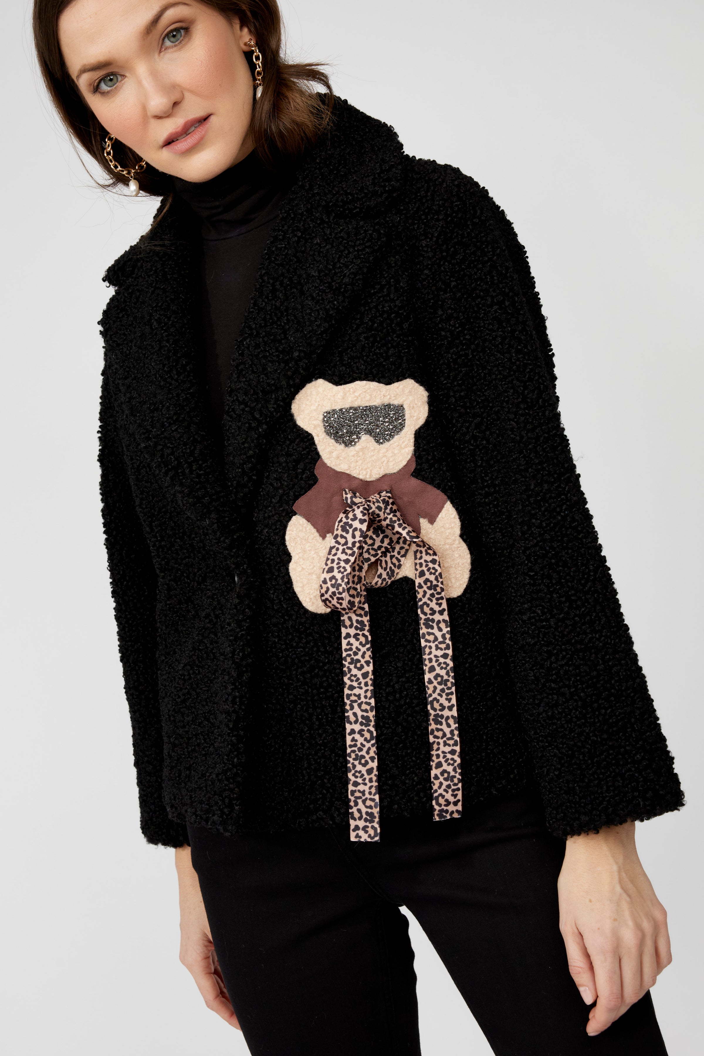 This special jacket features a button closure and collared neckline for a polished look. Designed with a regular fit and hip-length cut, this piece is perfect for everyday wear. The distinctive bear detail adds a playful, versatile touch to your wardrobe.