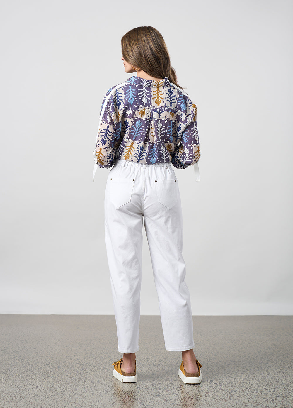 Button-through collared shirt with a tailed hem and contrast tape detailing. Featuring side button through plackets.
