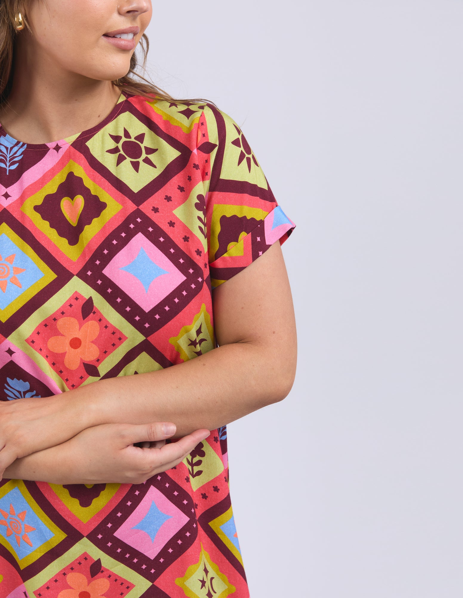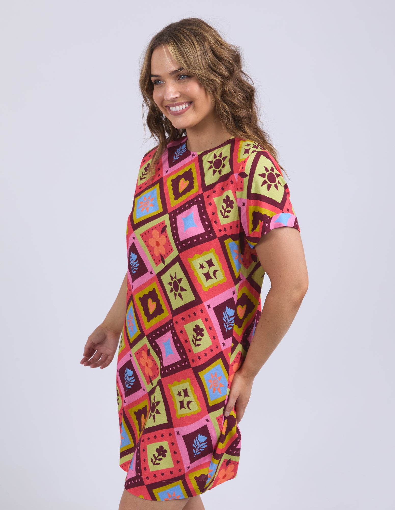 Elm Rhode Dress in an exclusive print , knee length, and relaxed fit . Style it your way for an effortless look that works for any day of the week.