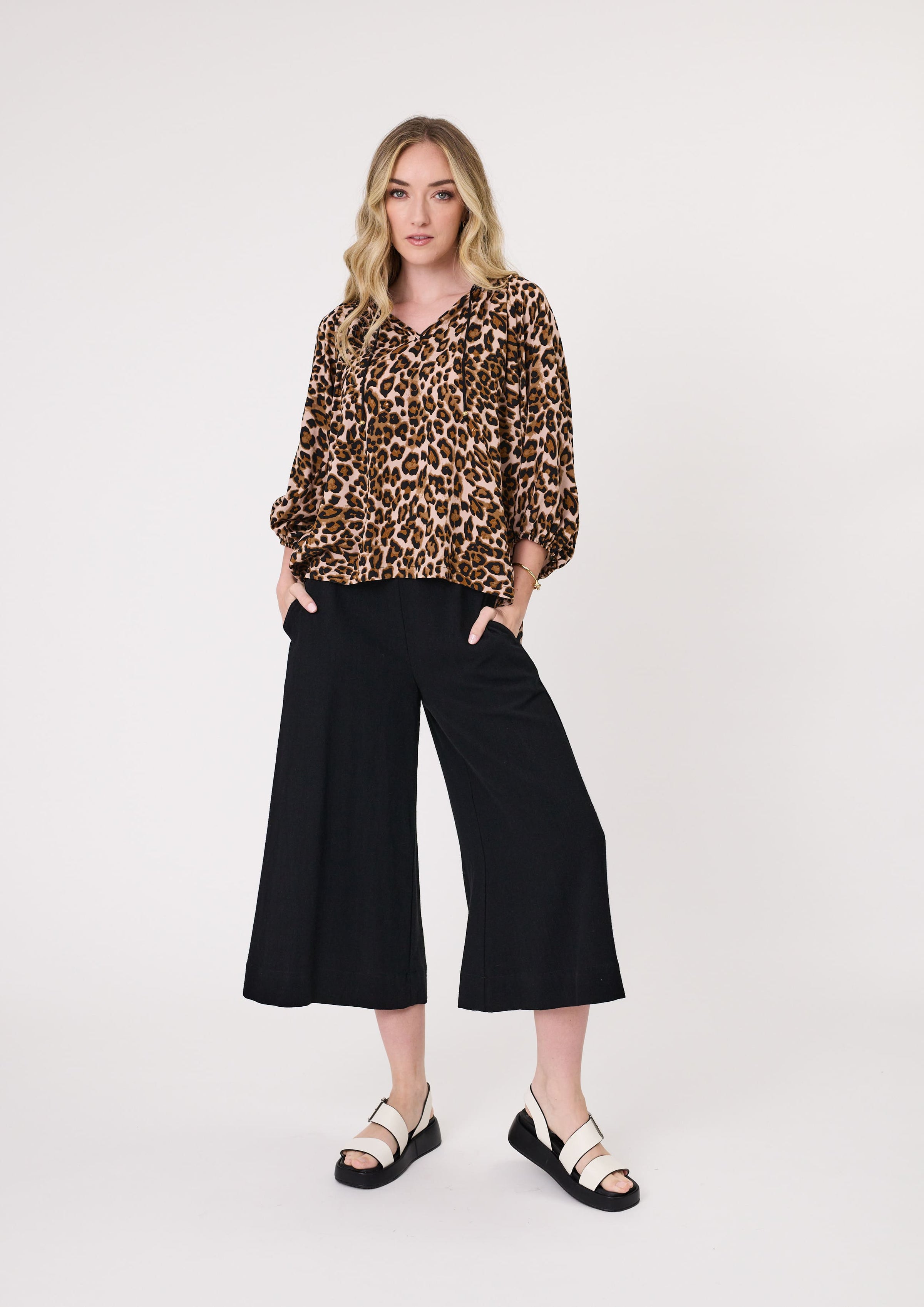 • Leopard print loose shaped top, design with a V-neckline and relaxed tie strings.