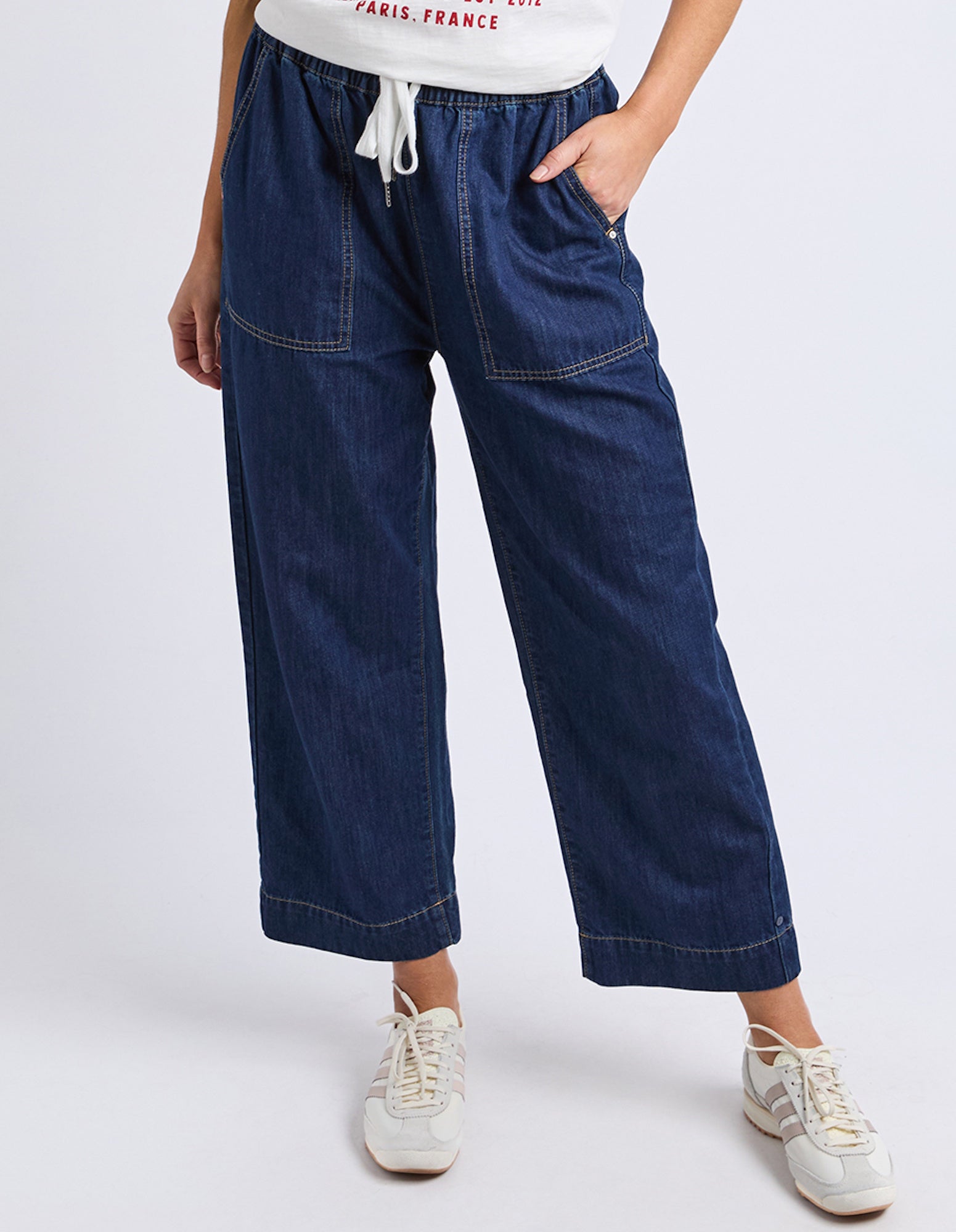 The ultimate in comfort, the Greta Slim Leg Pant in a mid-weight rigid denim are so easy to wear and will work with everything in your wardrobe. Featuring a drawstring waist for extra comfort, you'll be reaching for these pants everyday.