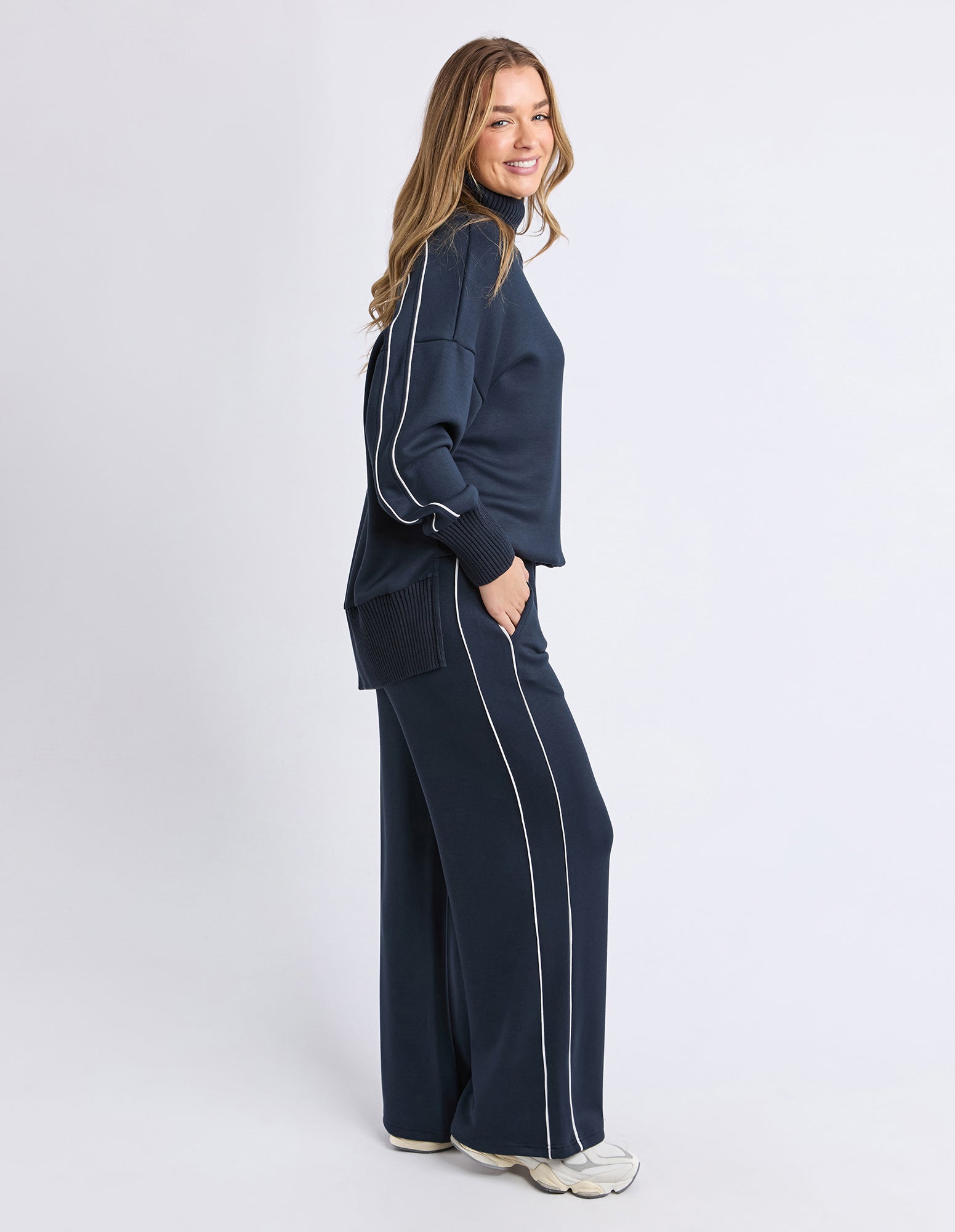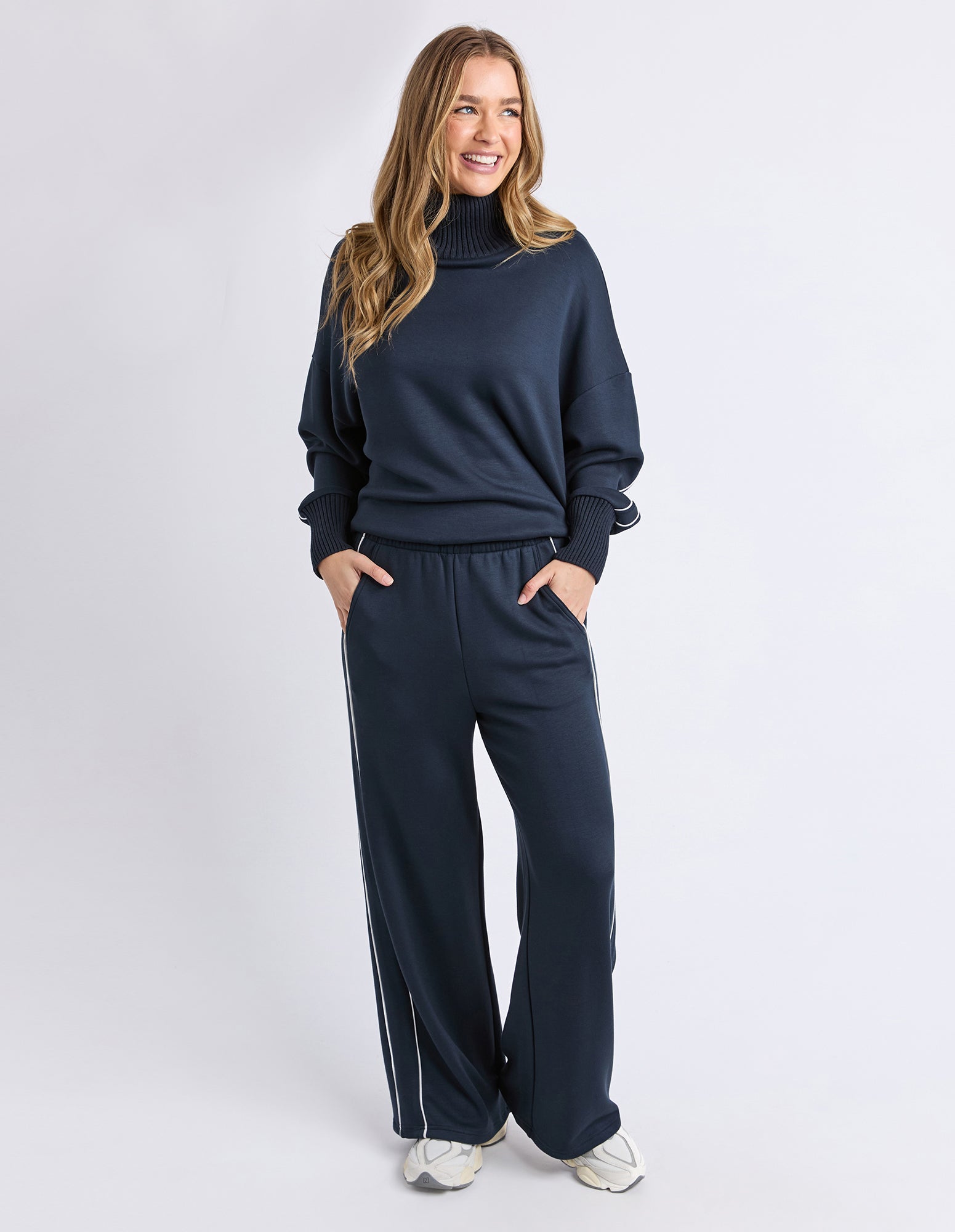 The Deluxe Pant is the ultimate feel-good staple with a sporty edge. Designed with a comfy elastic waistband and an easy wide leg shape, this pant is finished with contrast side piping for a clean, elevated look. Perfect for everyday wear, travel days, or pairing with the Deluxe Funnel for a matching set moment.