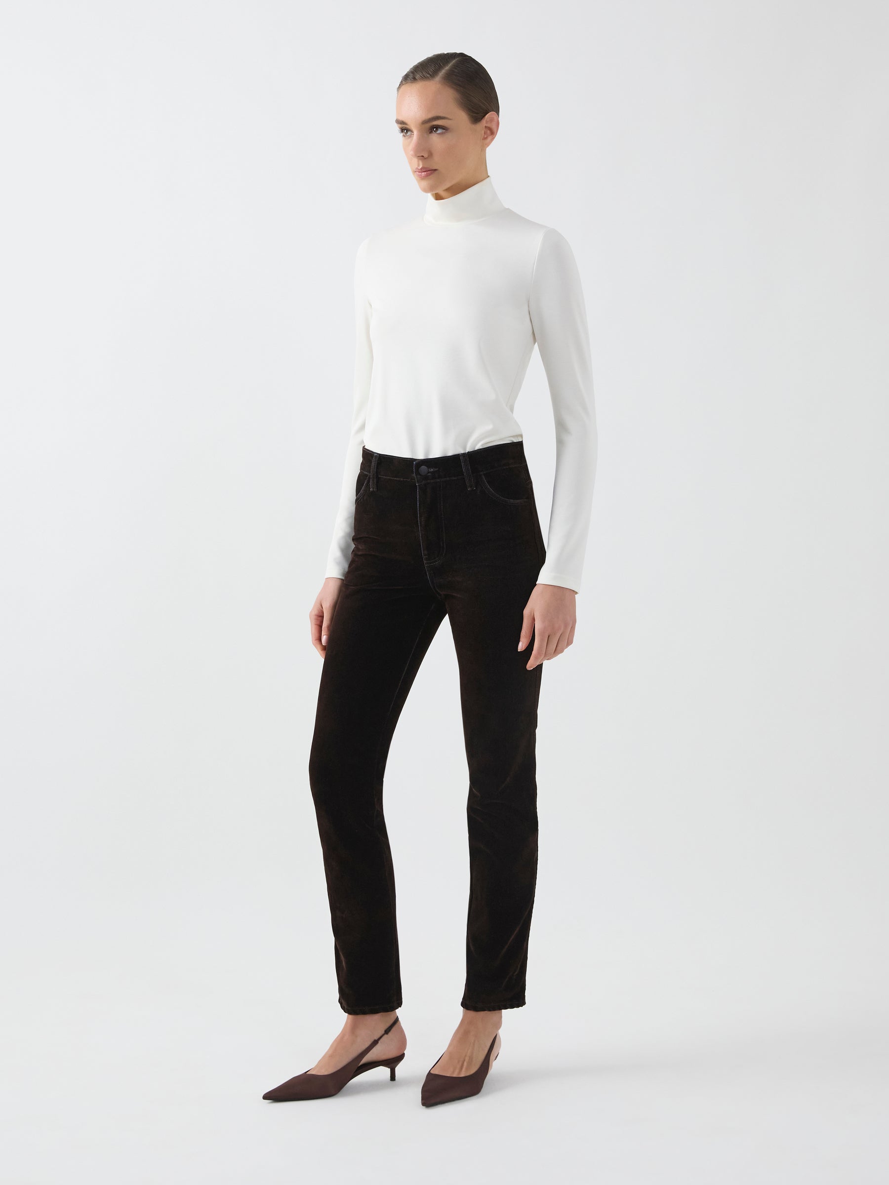 Soft, minimal and endlessly versatile, the Apollo Top is crafted from a suede-touch knit jersey in ivory. The high neckline and long sleeves offer warmth without bulk, making it an effortless base layer for everyday winter dressing.
