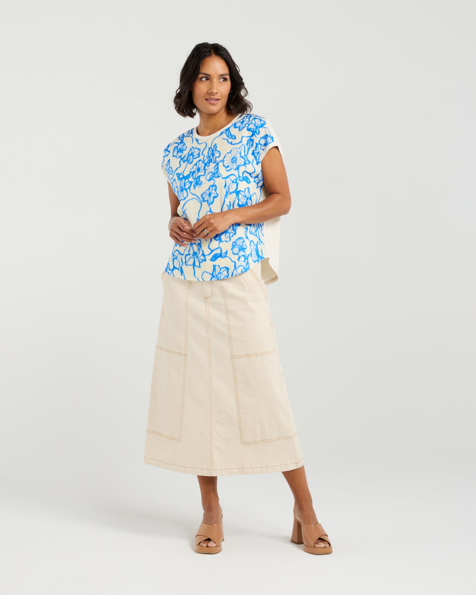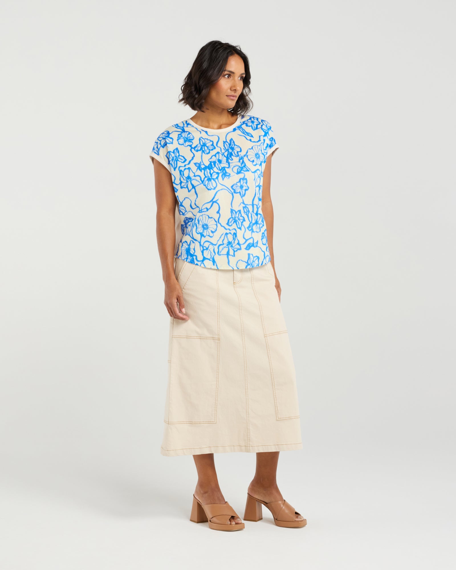 Cute and casual with a point of difference, the Tatum Top gives you the comfort and ease of a t-shirt with its Cotton Spandex back and the added luxury of the gorgeous Flowerbomb Blue print on the front . This is perfect back with jeans or shorts for everyday summer style or with a pair of dress pants for work and occasion dressing.