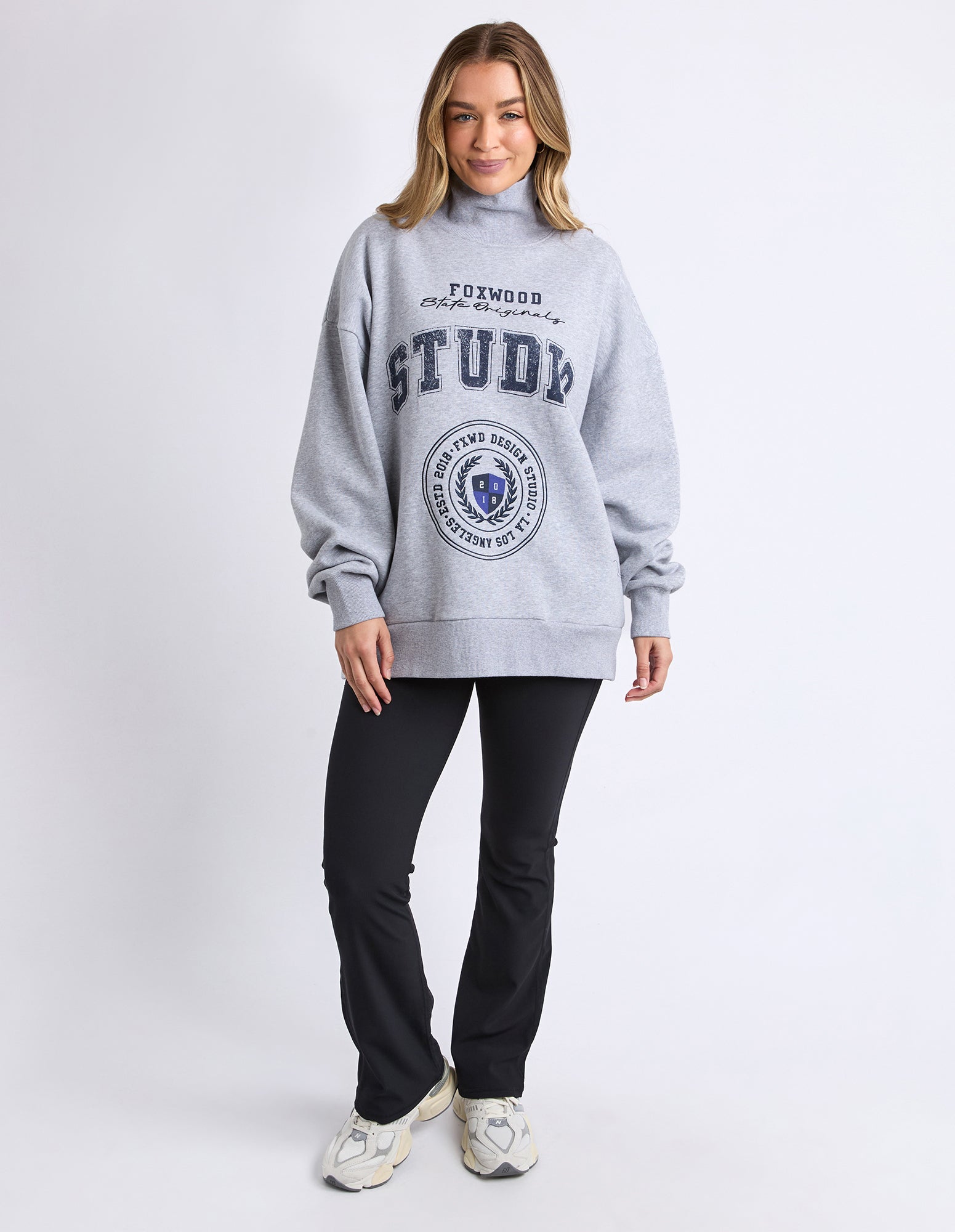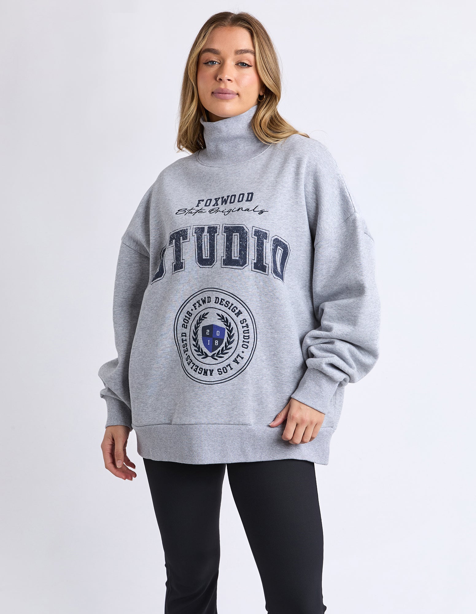 Foxwood Studio Mock Neck Crew in Grey Marle