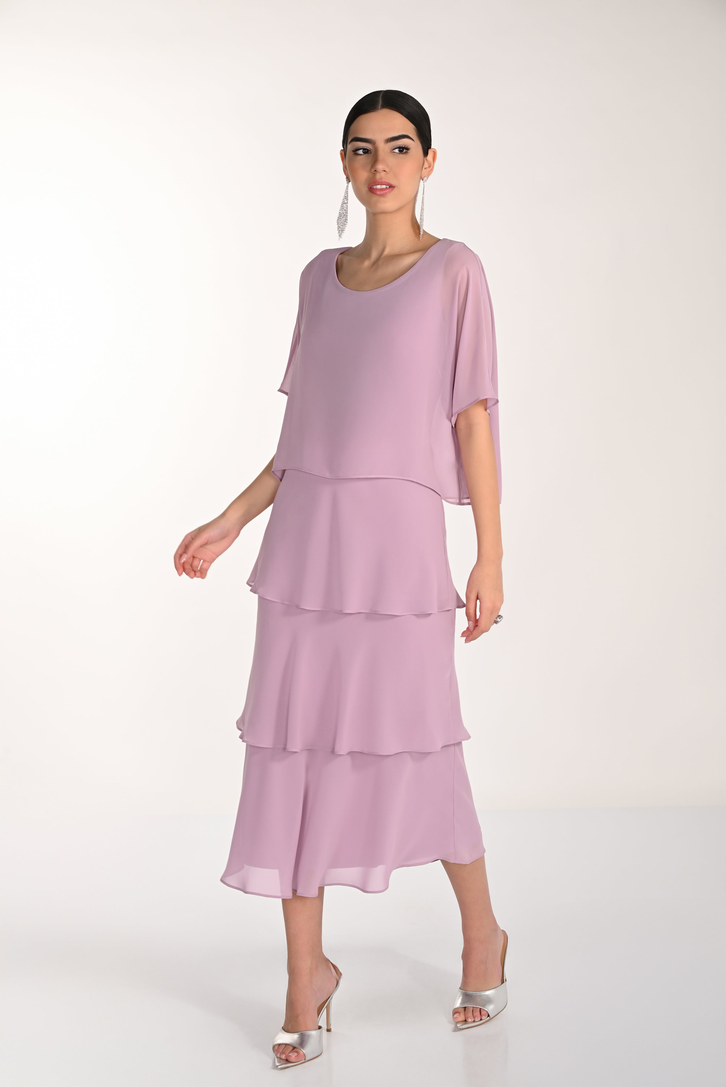 Frank Lyman Tiered Chiffon Dress in Periwinkle